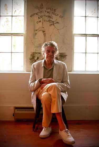 Kurt Vonnegut nel 2005. Alle spalle una citazione di William Blake
